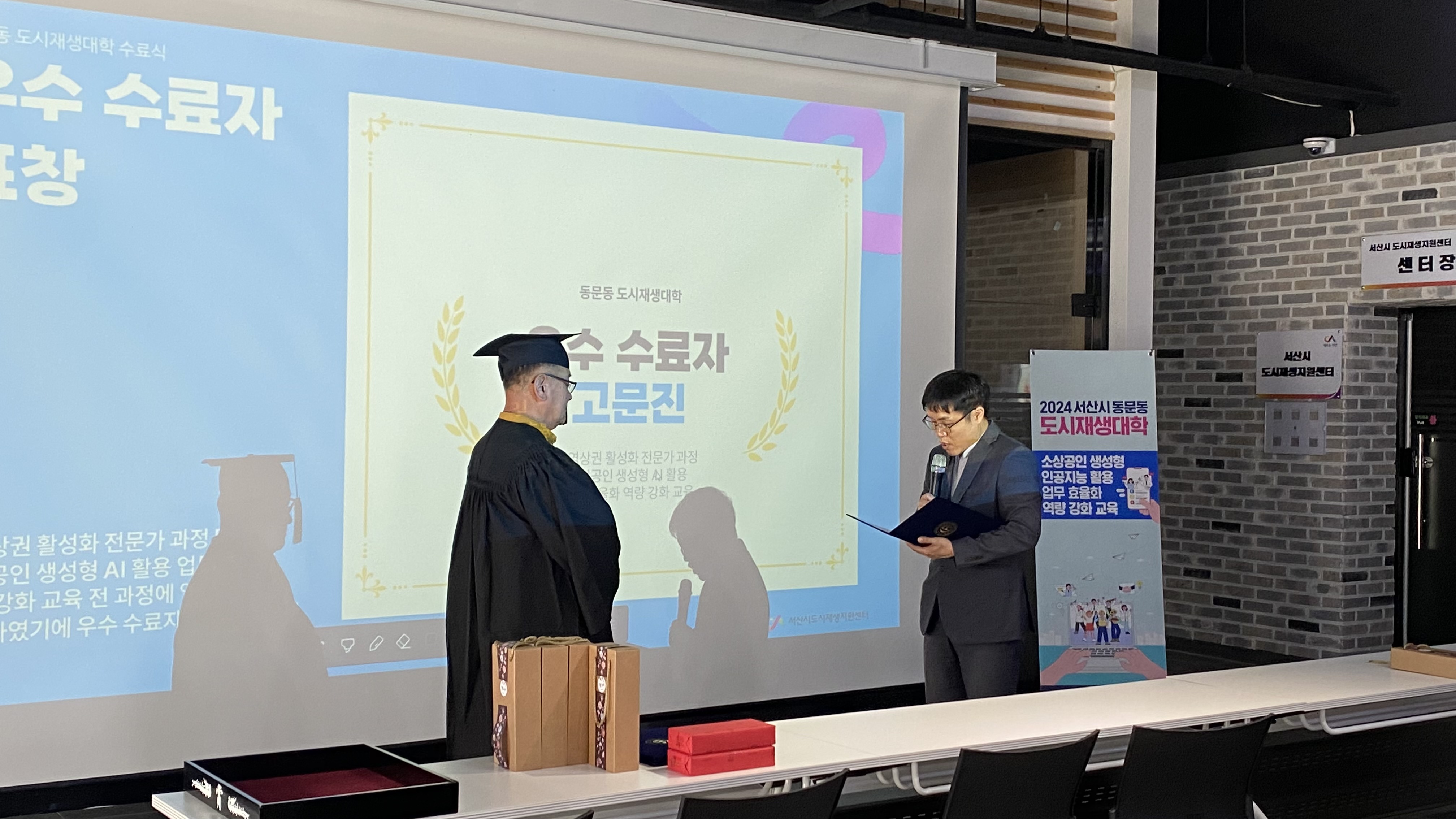 -교육 종료 후 서산시 동문동 도시재생대학 전체 교육과정 수료식 및 우수 수료자 표창