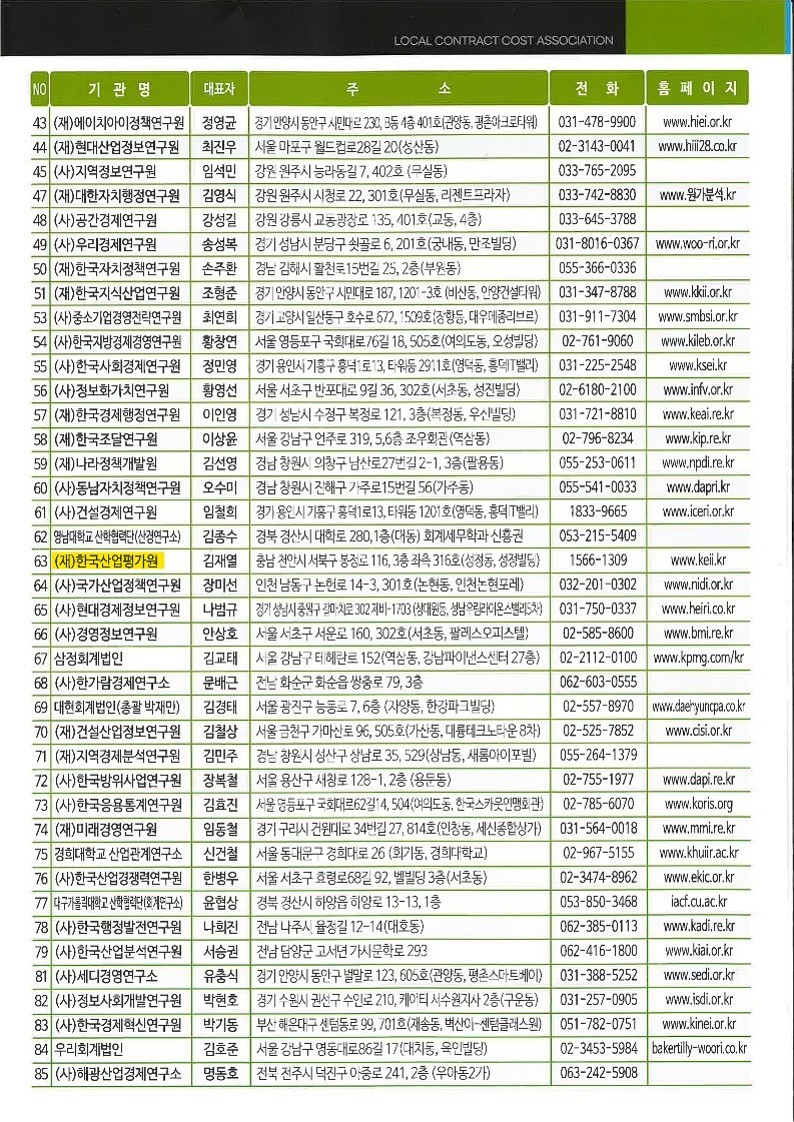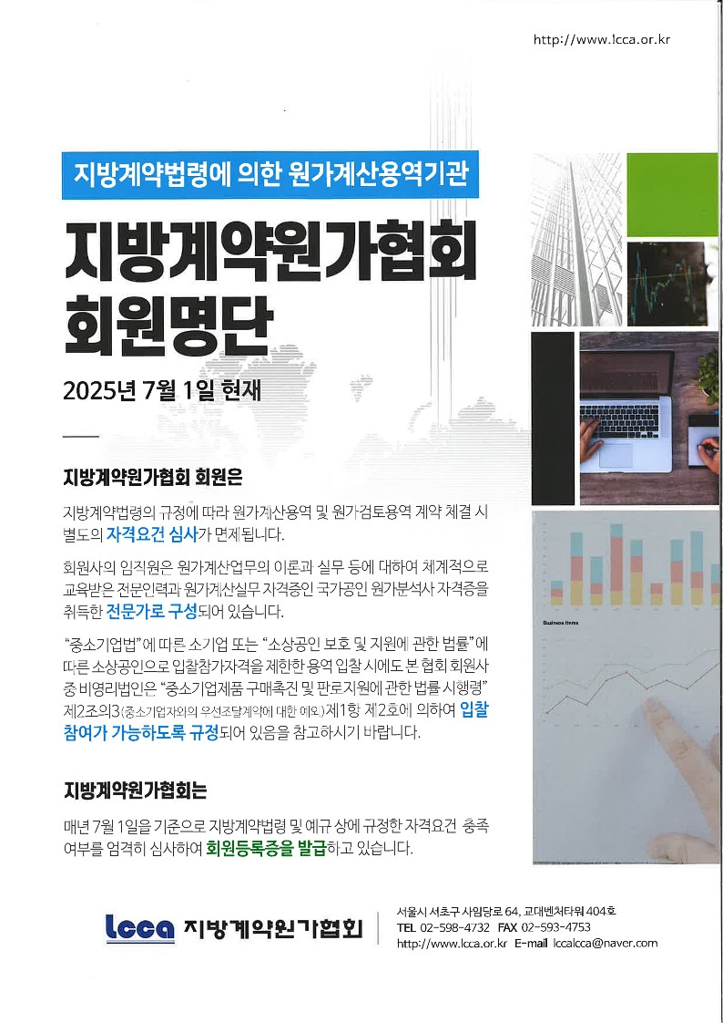 재단법인 한국산업평가원은 사단법인 지방계약원가협회에 등록된 정회원사로서,