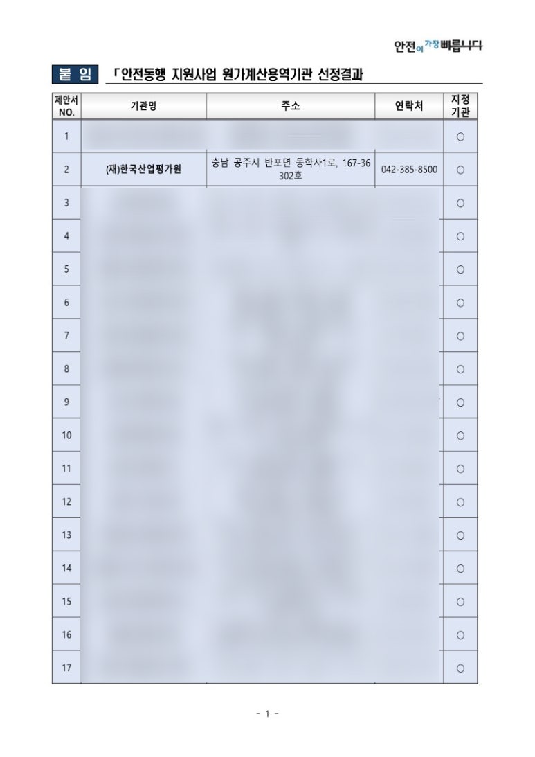 이와 더불어, 저희 한국산업평가원이 해당 사업의 원가계산용역기관으로 최종 선정되었는데요. 특히 충남 지역 업체 중에서는 저희가 유일하게 선정되었습니다.